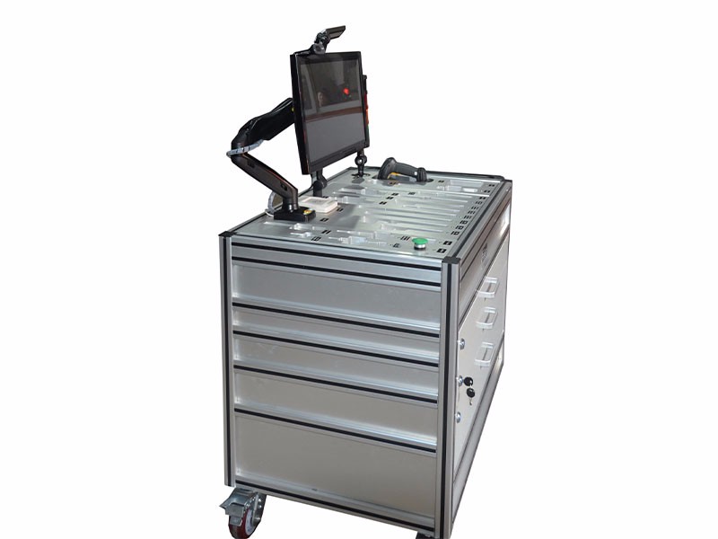 ■車下設(shè)備接線預(yù)組作業(yè)臺包含有電源,數(shù)據(jù)終端顯控設(shè)備(觸摸液晶顯示屏、工控機、鍵盤、鼠標(biāo)),掃碼設(shè)備,員工卡讀卡器,模塊化工具定置區(qū)。